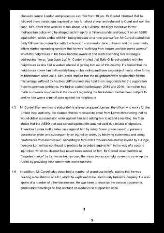 places in central London and placed on a curfew from 10 pm. Mr Cordell informed that he