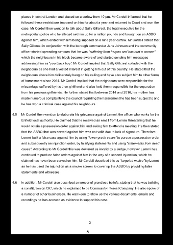 places in central London and placed on a curfew from 10 pm. Mr Cordell informed that he