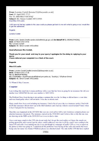 being sent, her name was Emma O'Sullivan please see attached email. The only traffic CPS that have replied