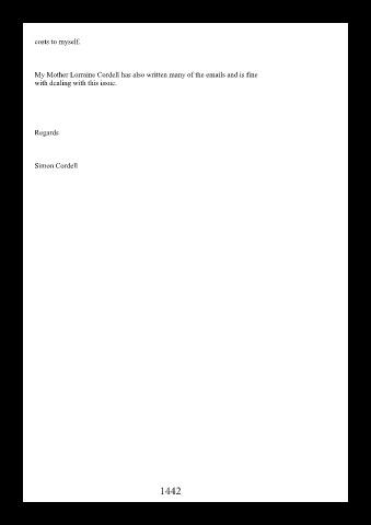 costs to myself. My Mother Lorraine Cordell has also written many of the emails and is fine with dealing with this issue. Regards Simon Cordell 1442