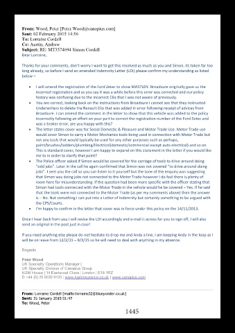 “odd jobs”. Later in the call he again confirmed that Simon was not covered “to drive around doing