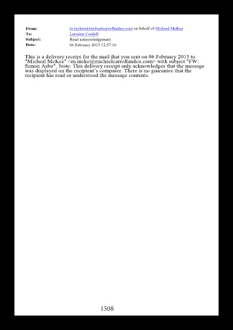 This is a delivery receipt for the mail that you sent on 06 February 2015 to