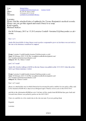 To: iosephinewardsolicitor@amail.com: Lorraine Cordell