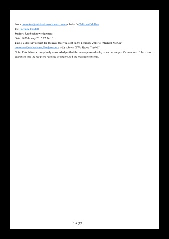 This is a delivery receipt for the mail that you sent on 06 February 2015 to "Micheal McKee"