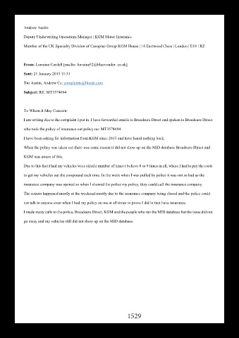 I made many calls to the police, Broadsure Direct, KGM and the people who run the MID database but the issue did not