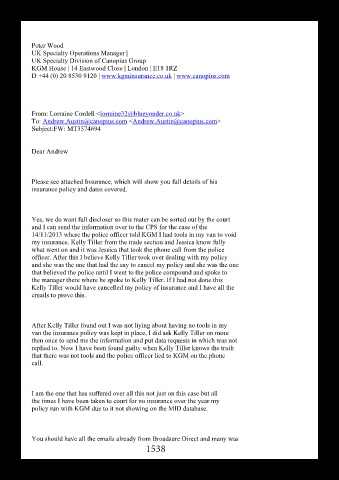 14/11/2013 where the police officer told KGM I had tools in my van to void