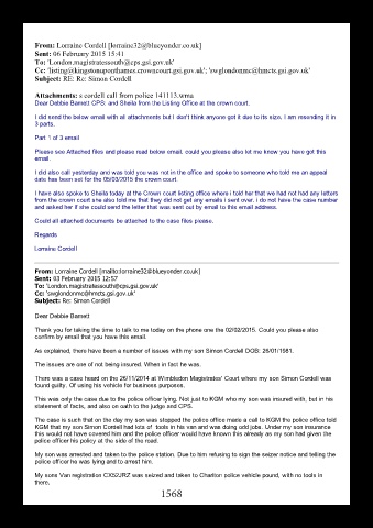 There was a case heard on the 26/11/2014 at Wimbledon Magistrates' Court where my son Simon Cordell was