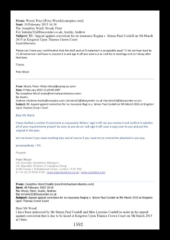 Subject: RE: Appeal against conviction for no insurance Regina v. Simon Paul Cordell on 5th March