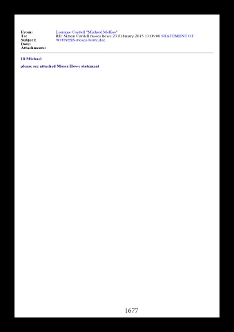 From: Lorraine Cordell "Micheal McKee" To: RE: Simon Cordell moses howe 23 February 2015 13:06:00 STATEMENT OF Subject: WITNESS-moses-howe.doc Date: Attachments: Hi Michael please see attached Moses Howe statement 1677