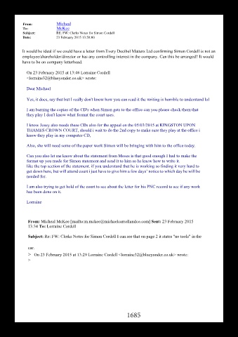 It would be ideal if we could have a letter from Every Decibel Matters Ltd confirming Simon Cordell is not an