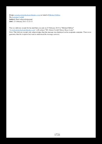 This is a delivery receipt for the mail that you sent on 23 February 2015 to "Micheal McKee"