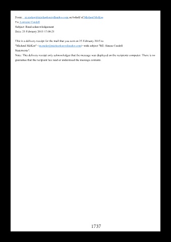 This is a delivery receipt for the mail that you sent on 25 February 2015 to