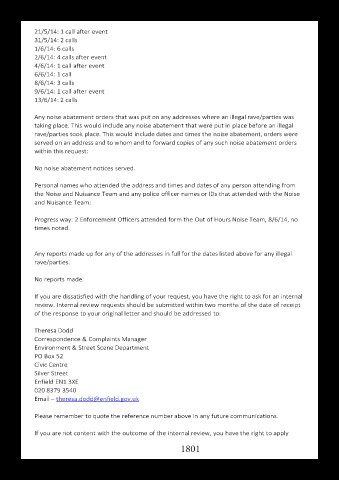 rave/parties took place. This would include dates and times the noise abatement, orders were