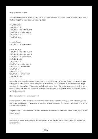 rave/parties took place. This would include dates and times the noise abatement, orders were