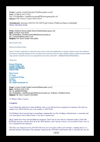 Many emails have been sent including my insurance I had a list of cases due to a insurance policy I had with