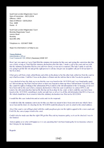 I was shocked to hear the lady say to me that the case was heard on the 18/12/2014 and I was found guilty again