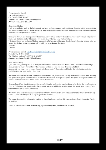 I just wanted to get an update as to if any information had come in from the Public Order Unit at Scotland Yard yet.