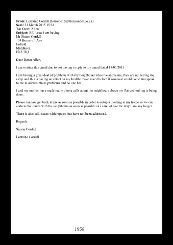 I and my mother have made many phone calls about the neighbours above my flat yet nothing is being