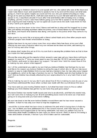 see Debbie, and seem to have given her support. Yet each time I told the council how ill this
