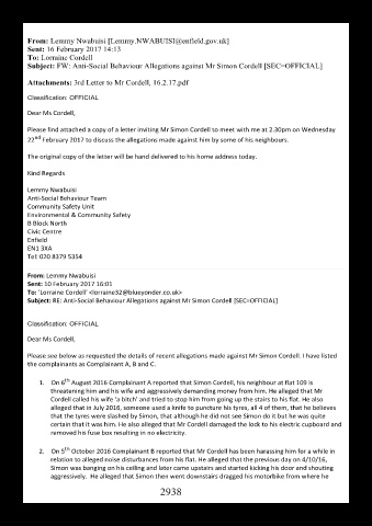 Subject: FW: AntiSocial Behaviour Allegations against Mr Simon Cordell [SEC=OFFICIAL]