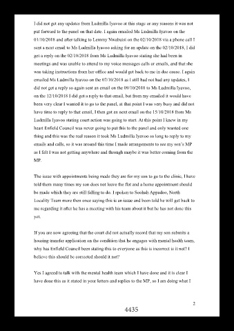 put forward to the panel on that date. I again emailed Ms Ludmilla Iyavoo on the
