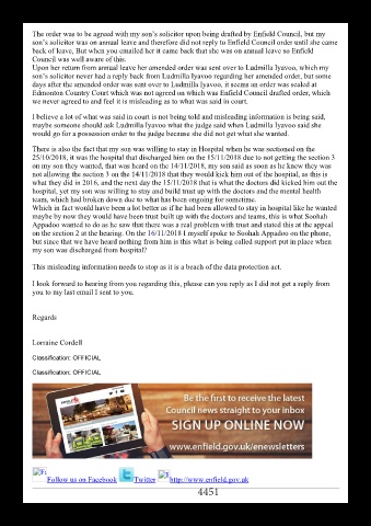 The order was to be agreed with my son’s solicitor upon being drafted by Enfield Council, but my
