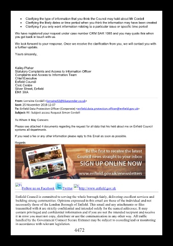 Please see attached 4 documents regarding the request for all data that his held about me on Enfield Council