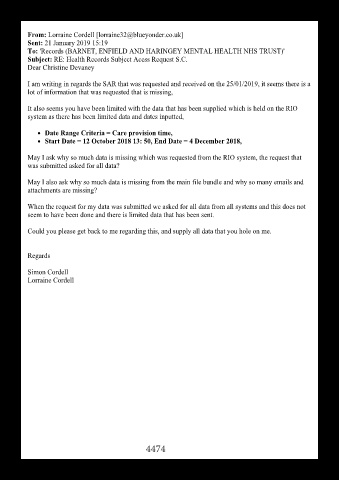 I am writing in regards the SAR that was requested and received on the 25/01/2019, it seems there is a