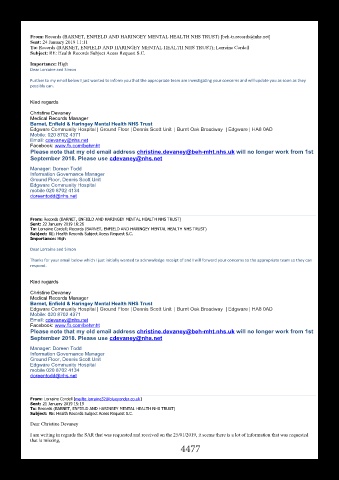 To: Lorraine Cordell; Records (BARNET, ENFIELD AND HARINGEY MENTAL HEALTH NHS TRUST)