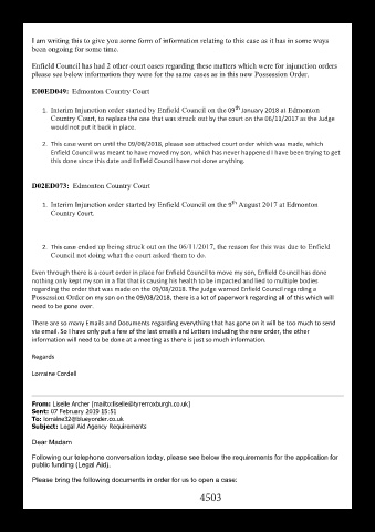 regarding the order that was made on the 09/08/2018. The judge warned Enfield Council regarding a