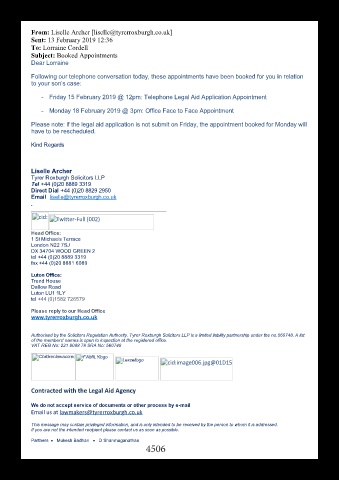 Following our telephone conversation today, these appointments have been booked for you in relation