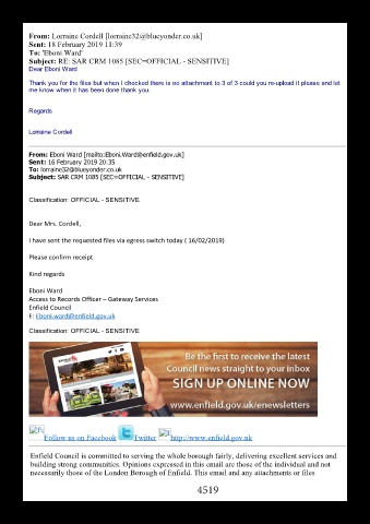 necessarily those of the London Borough of Enfield. This email and any attachments or files