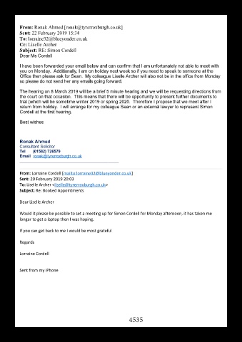 return from holiday. I will arrange for my colleague Sean or an external lawyer to represent Simon