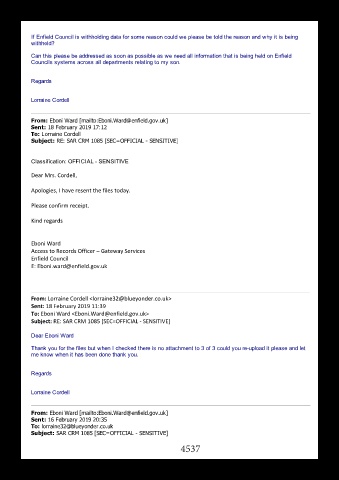 Can this please be addressed as soon as possible as we need all information that is being held on Enfield