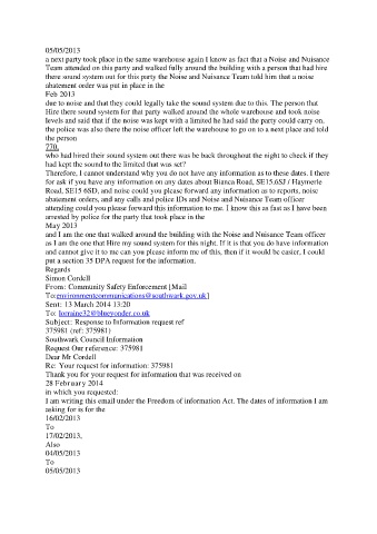 a next party took place in the same warehouse again I know as fact that a Noise and Nuisance