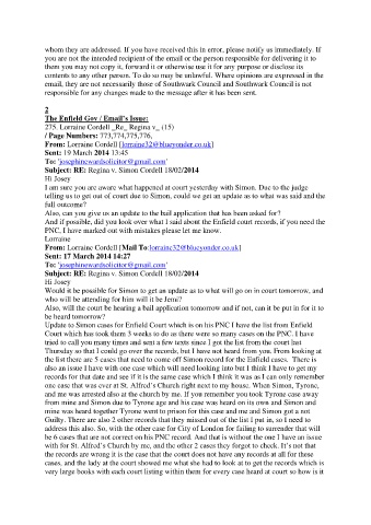 Update to Simon cases for Enfield Court which is on his PNC I have the list from Enfield