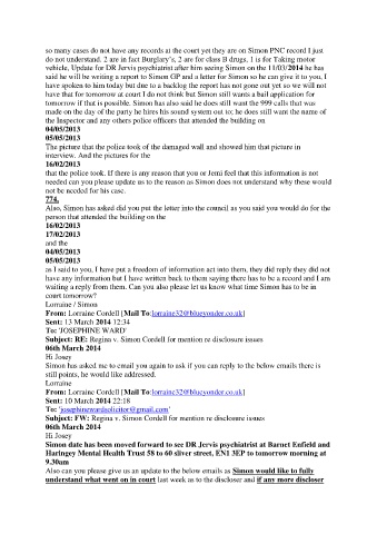 vehicle, Update for DR Jervis psychiatrist after him seeing Simon on the 11/03/2014 he has