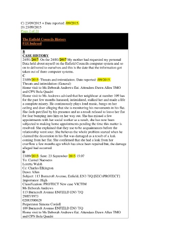 23/09/2015: Threats and intimidation. Date reported: /09/2015.
