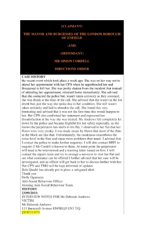 INTERVIEW NOTES FOR Ms Deborah Andrews