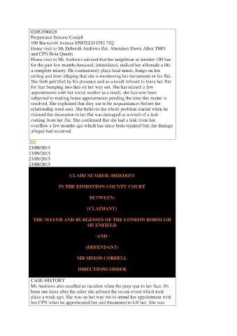 Home visit to Ms Andrews advised that her neighbour at number 109 has