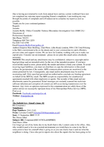 yet completed my outcome report regarding Simon's complaints. I am working my way