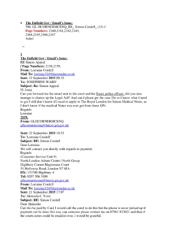 Can you forward me the email sent to the court and the Essex police officer; did you also