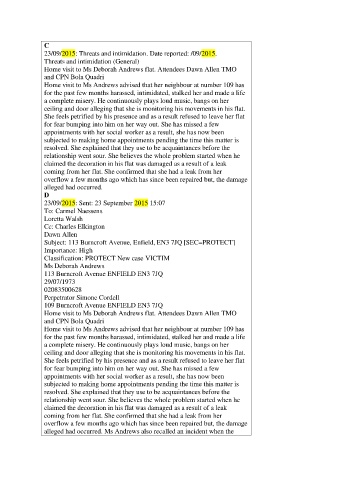 23/09/2015: Threats and intimidation. Date reported: /09/2015.