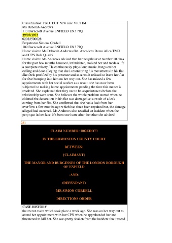 Home visit to Ms Andrews advised that her neighbour at number 109 has