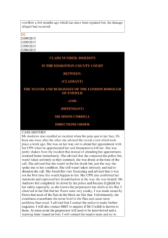 observed in her flat that her floors were very creaky, I was made aware by