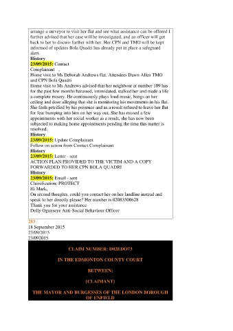 arrange a surveyor to visit her flat and see what assistance can be offered I
