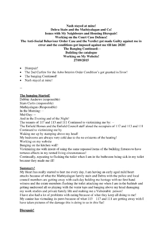 The tenants of 117 and 113 and 111 Continued to victimizing me by: --