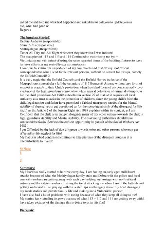 The occupiers of 117 and 113 and 111 Continued to victimizing me by: --