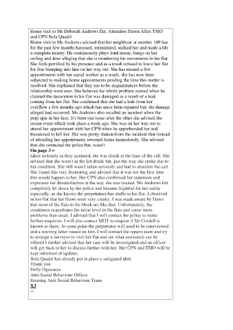 Home visit to Ms Andrews advised that her neighbour at number 109 has