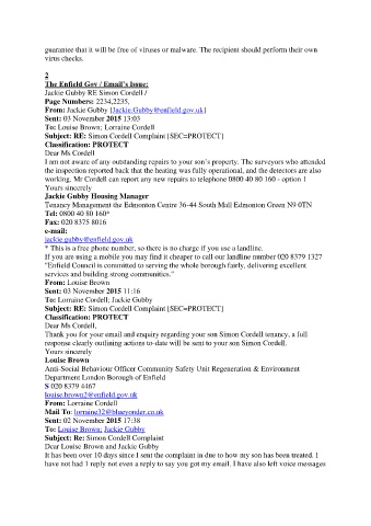 response clearly outlining actions to-date will be sent to your son Simon Cordell.